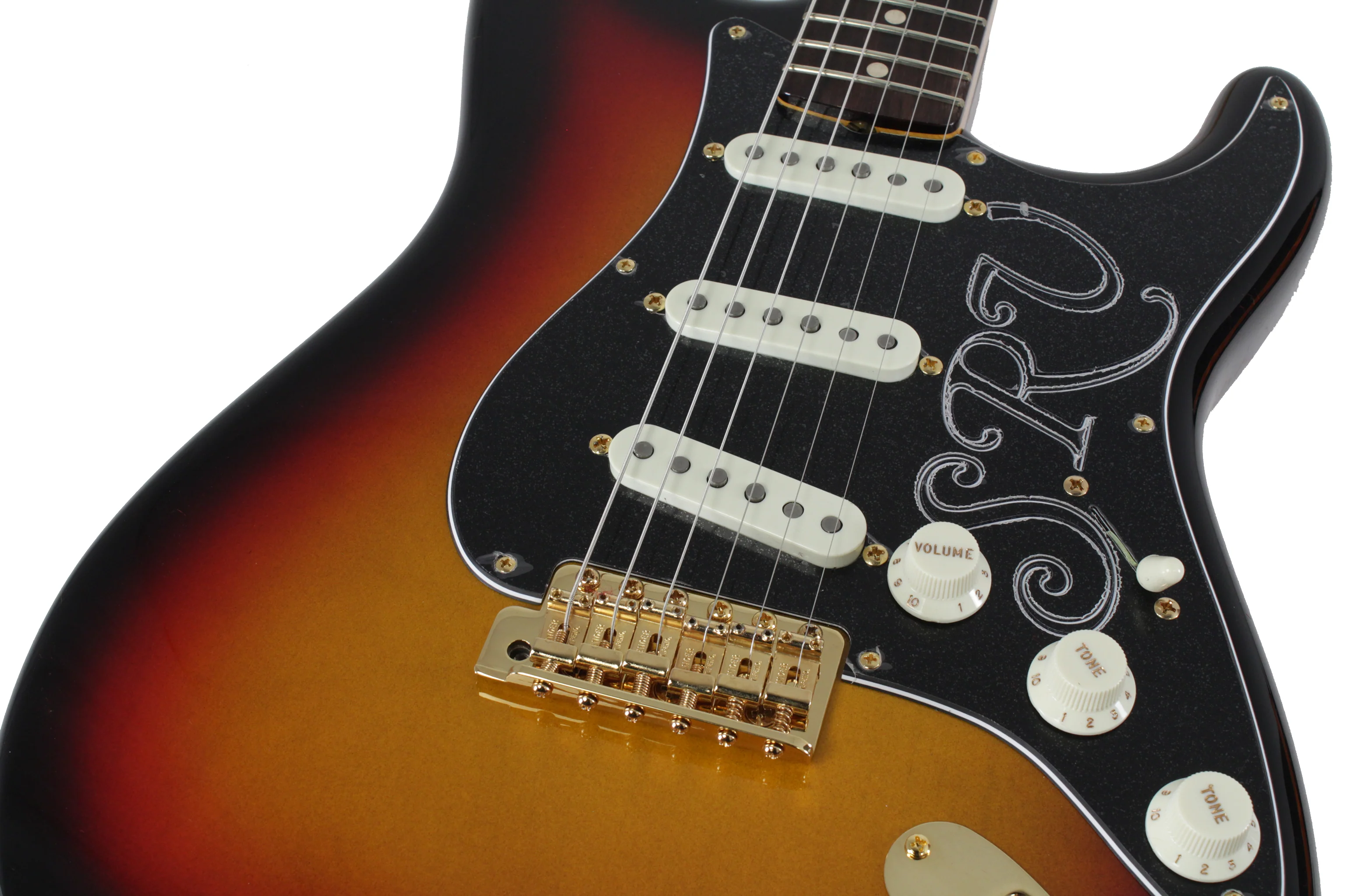 Other features include 5-way pickup switching, vintage-style wiring, 3-ply Black "SRV" pickguard, vintage-style tuning machines, bone nut and round string tree. Includes deluxe hardshell case, strap and Certificate of Authenticity.
