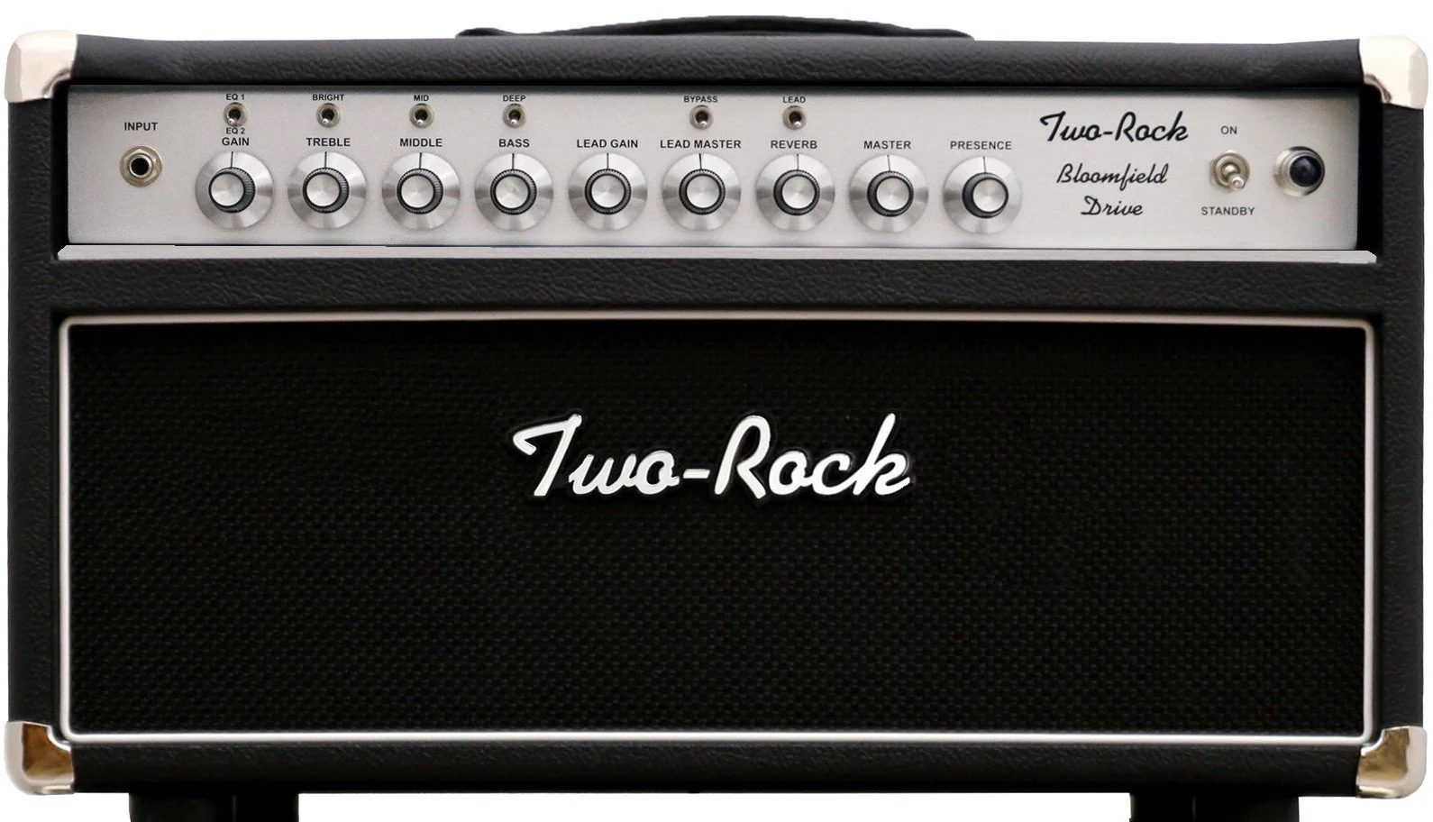 Two-Rock's newest look places this amp in a sleek silver or classic black anodize with gray tolex, silver thread cloth and blue accent piping. Not only will you stand out on stage with rich overdrive tones and classic Two-Rock cleans but so will your rig.