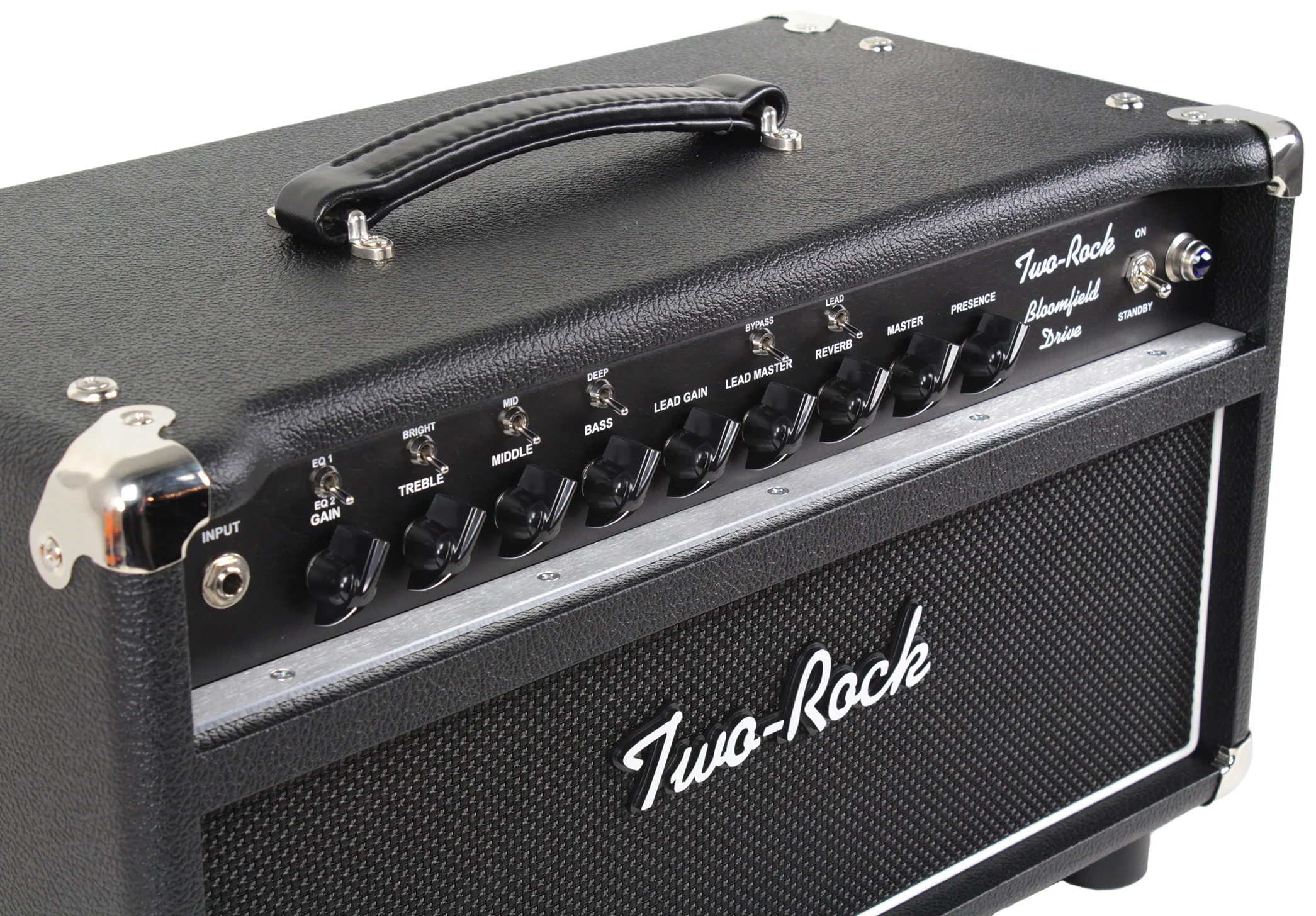 Two-Rock's newest look places this amp in a sleek silver or classic black anodize with gray tolex, silver thread cloth and blue accent piping. Not only will you stand out on stage with rich overdrive tones and classic Two-Rock cleans but so will your rig. Â